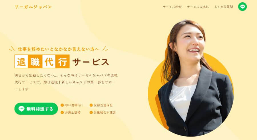 はい。労働組合が運営している退職代行のなかでも「リーガルジャパン」が特におすすめです。